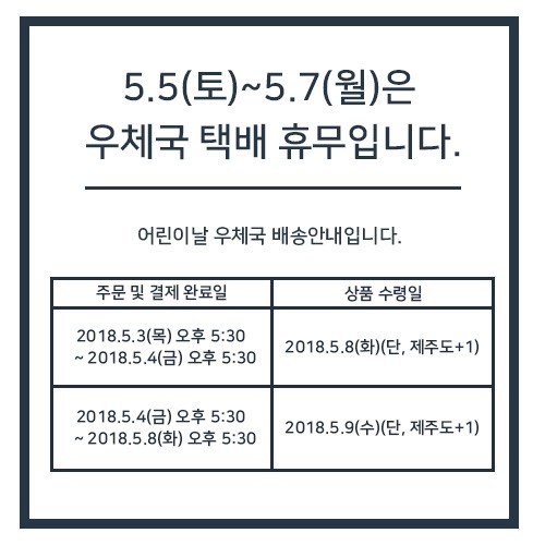 2018.5.5(토)~5.7(월) 어린이날 휴일 배송안내입니다.