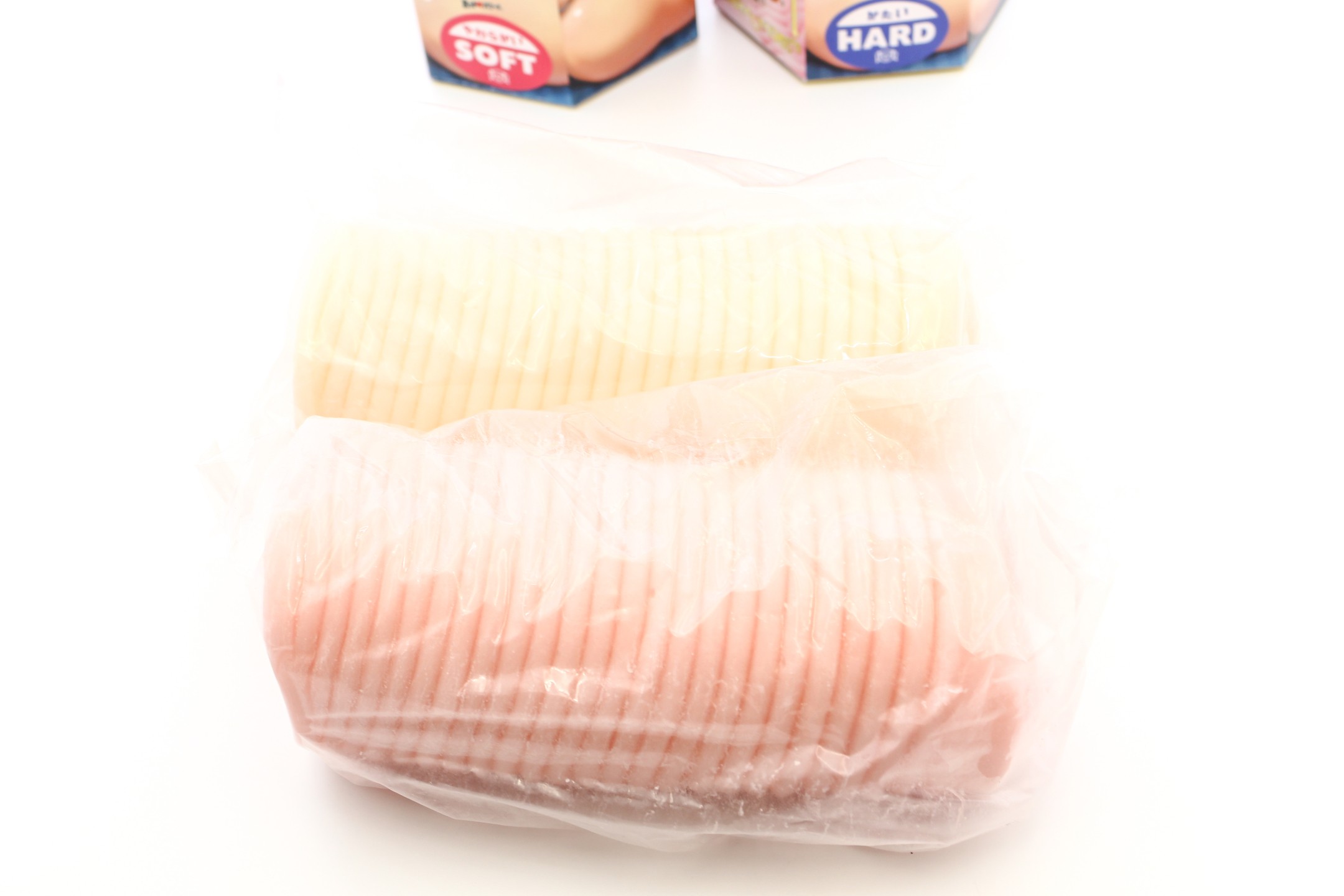 소프트와 하드. 하드 쪽은 핑크빛을 띄고 있으며 하드는 노란끼가 도는 색상의 홀입니다.