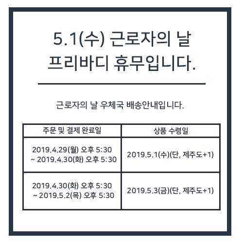 2019.5.1(수) 근로자의 날 배송안내입니다.